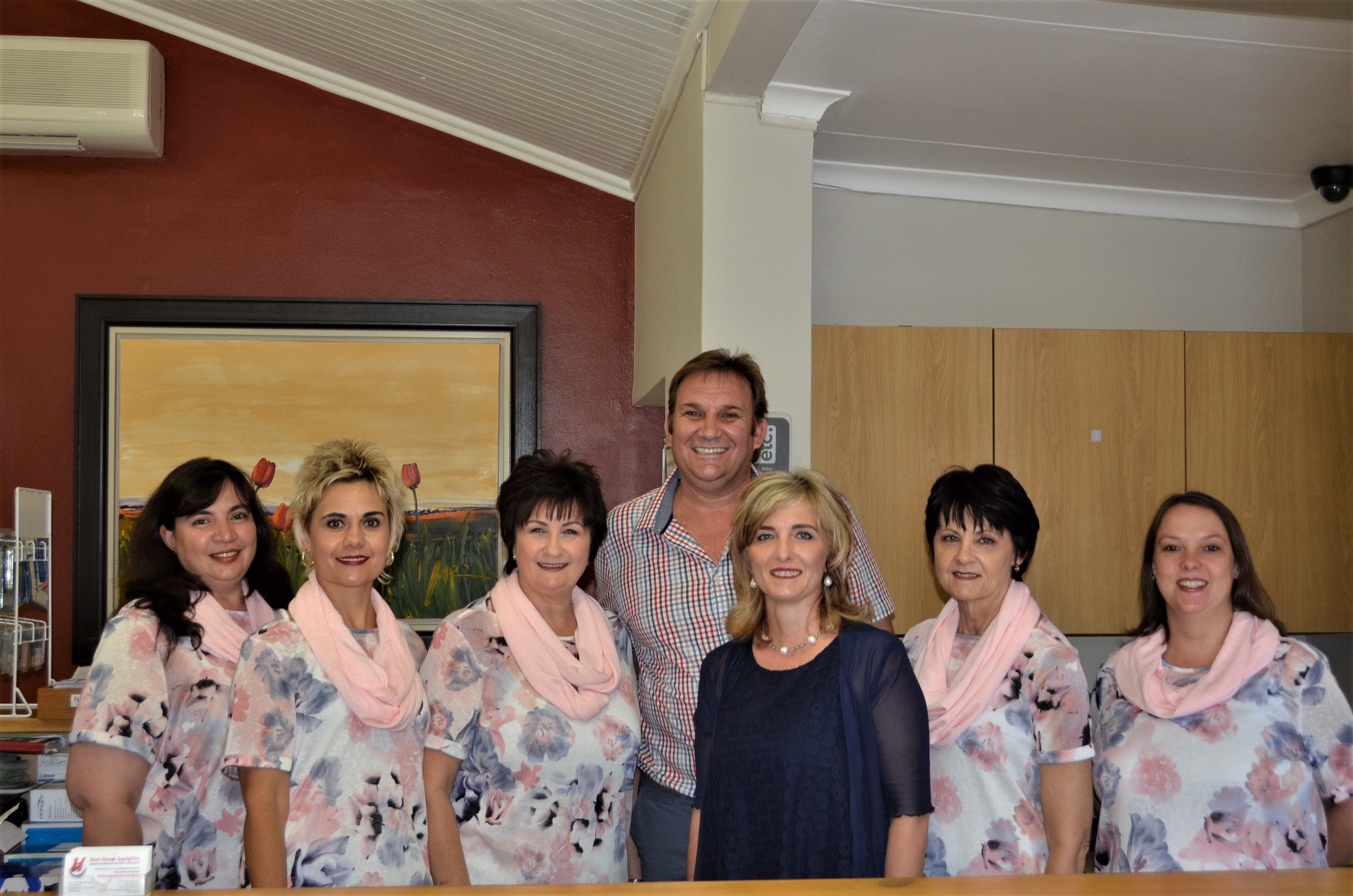 Elsabe de Ridder (Accounts), Ursula De Bruin (Reception), Sr. Ina Willemse (Practice Manager), Henk Human (Director and Medical Orthotist Prosthetist), Ingrid Human, Wilma Bekker (Reception), Magriet Broodryk (Accounts)