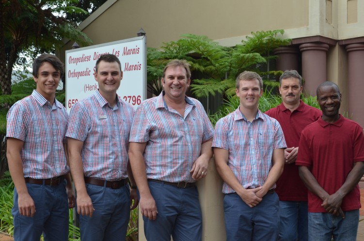 Phillip Paterson (Student), Marthinette Mocke (Medical Orthotist Prosthetist), SC Winters (Intern Orthotist Prosthetist), Cherise Van Wyk (Intern Orthotist Prosthetist), Henk Human (Director and Medical Orthotist Prosthetist), Helet Vermaak (Orthotist Prosthetist), Werner Smit (Medical Orthotist Prosthetist),